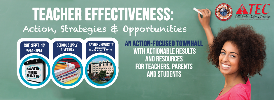 Mark your calendar for September 12, 2015: Orleans Public Education Network and the Delta Research Educational Foundation are partnering for an open Teacher Efficacy Town Hall. Click here to RSVP!